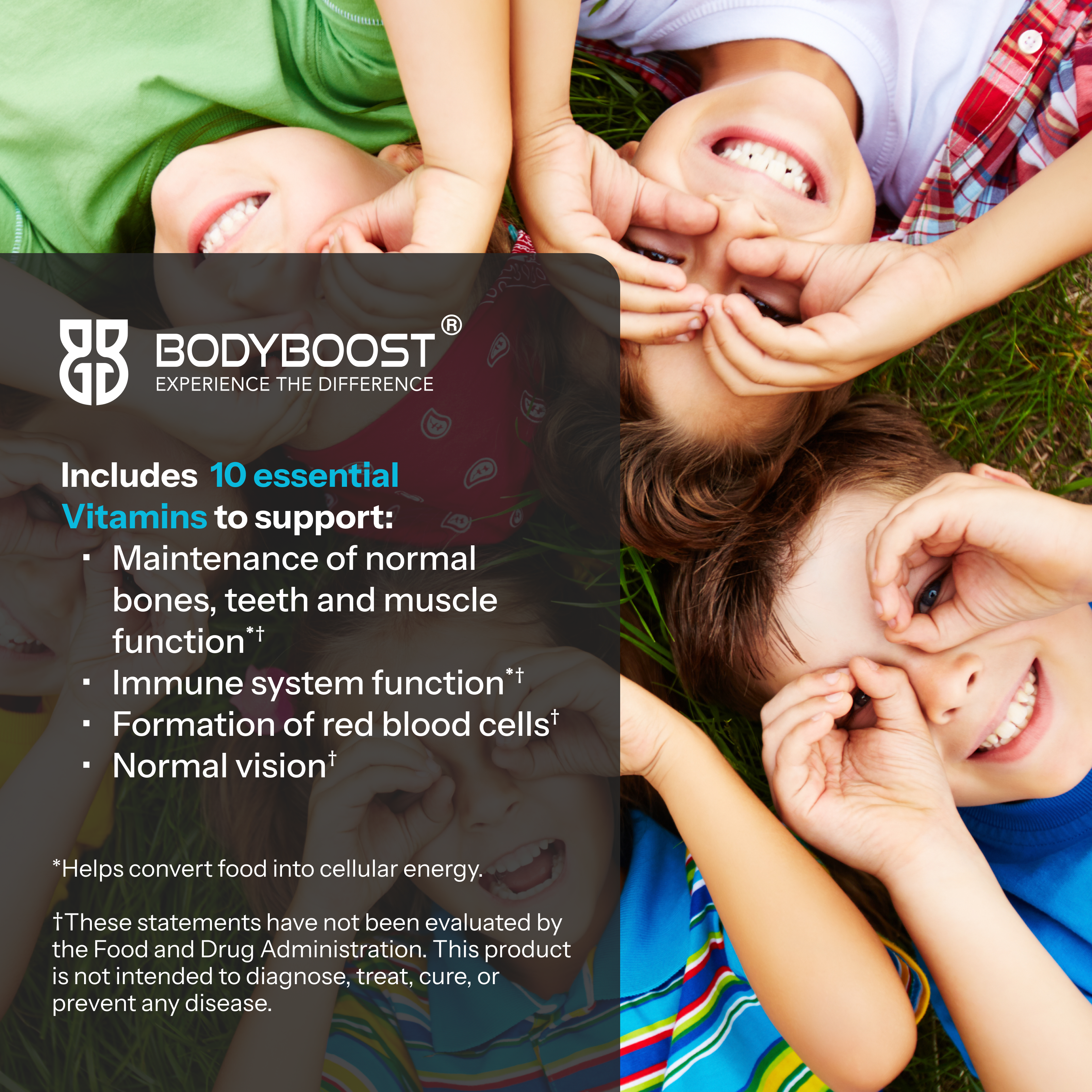 Support your child’s growth, cognitive development, and overall well-being with bodyboost Kids Multivitamin.* One daily vial provides essential nutrients to help your little one start each day at their best.* Give your child the ultimate boost with BodyBoost - helping them stay healthy, thrive, and embrace every new adventure. With vital nutrients for growth and energy, you can watch them flourish with confidence and excitement for the future.*