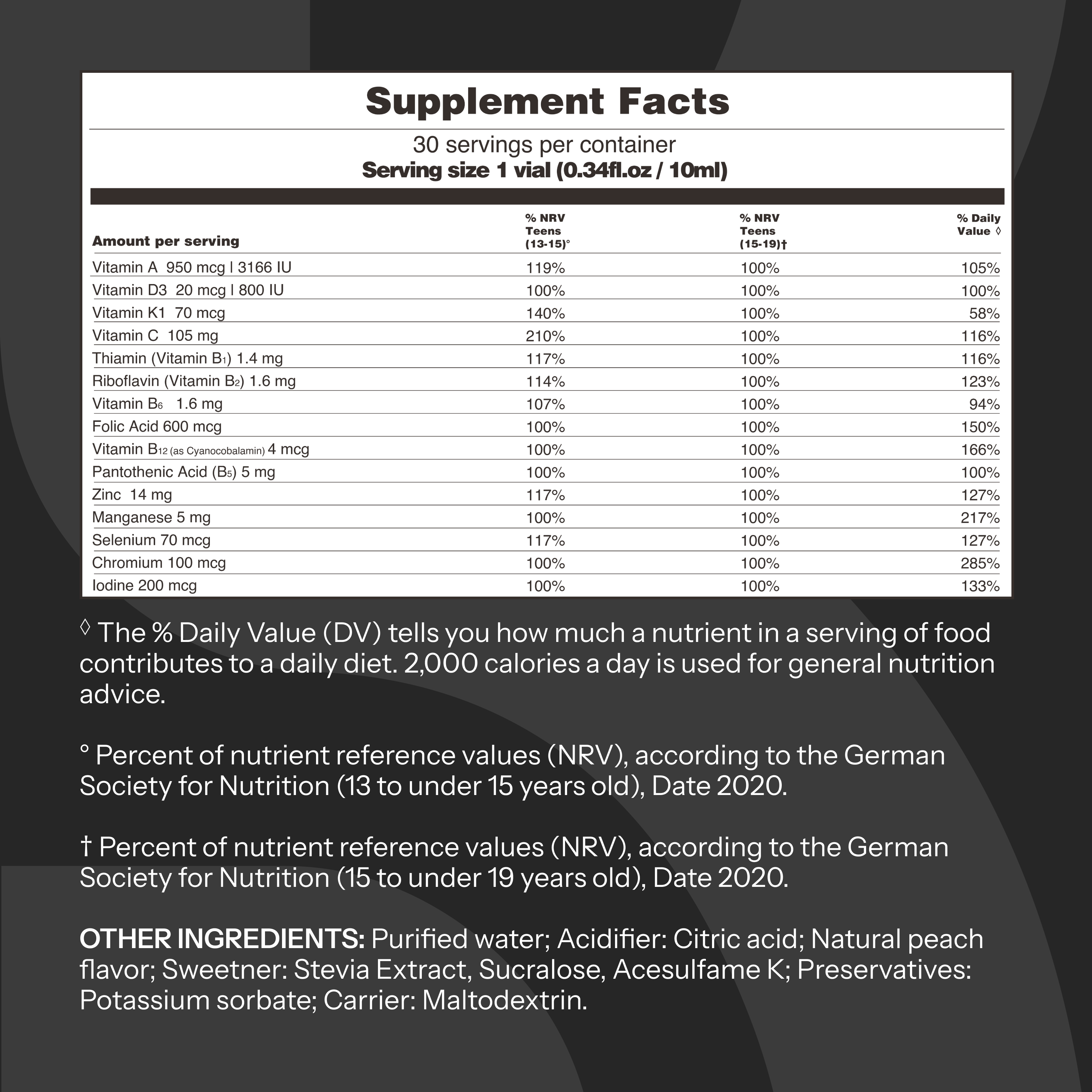 | Amount per serving | %NRV Teens 13-15Y** | %NRV Teens 16-19Y*** | %Daily Value◊ | |