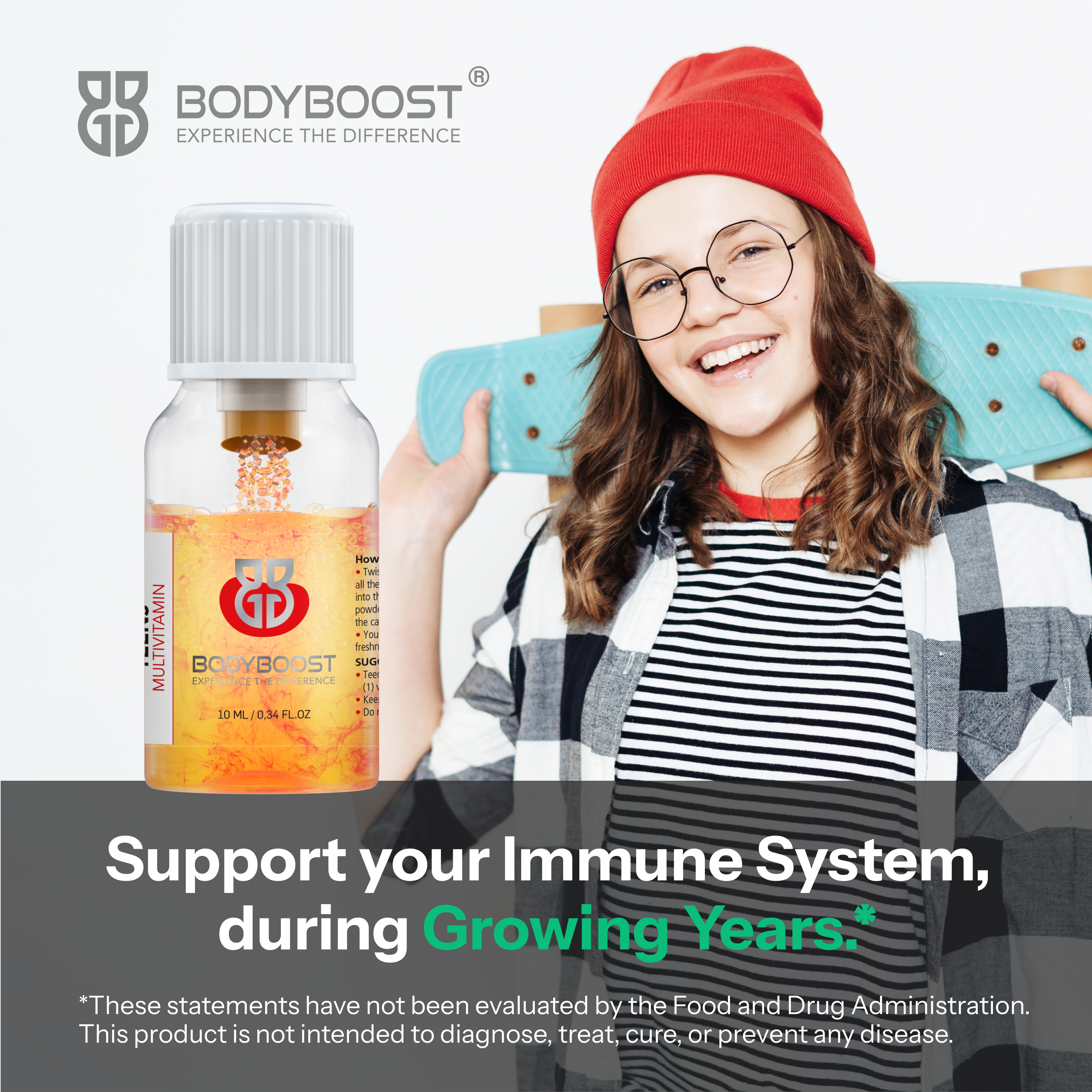 Hey everyone! If you're between 13 and 19, you should definitely check out bodyboost Teens Multivitamin. It is packed with all the essential vitamins and nutrients tailored just for us teens. This stuff is designed to support our immune system, which is super important during these crazy growing years. It helps boost our energy levels, sharpens our mental clarity, and contributes to our overall well-being – all things we need to handle school, sports, and life in general.